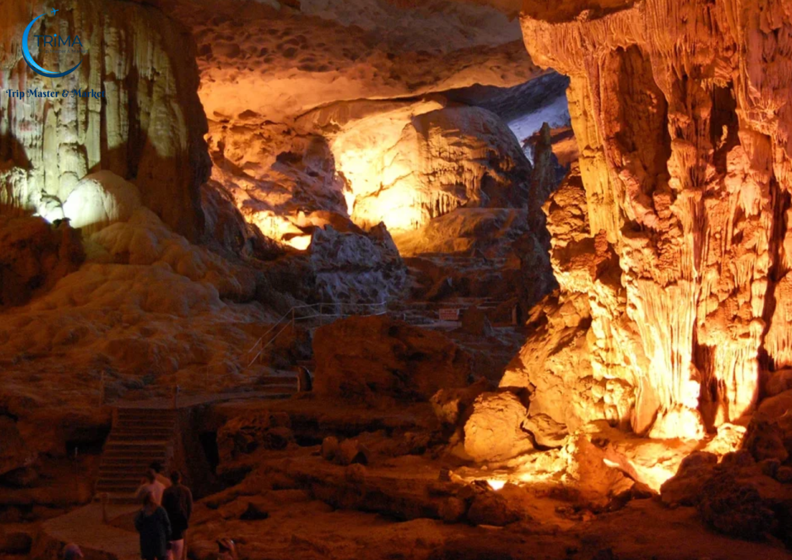 - Stop at Bo Hon Island. Our tour guide will take you to Sung Sot Cave / Sung Sot Cave, the largest and most beautiful cave in Ha Long Bay. After about 200 steps under the forest canopy, the cave entrance appears. A paradise appears before you. You will explore the cave for about 45 minutes before returning to the cruise
